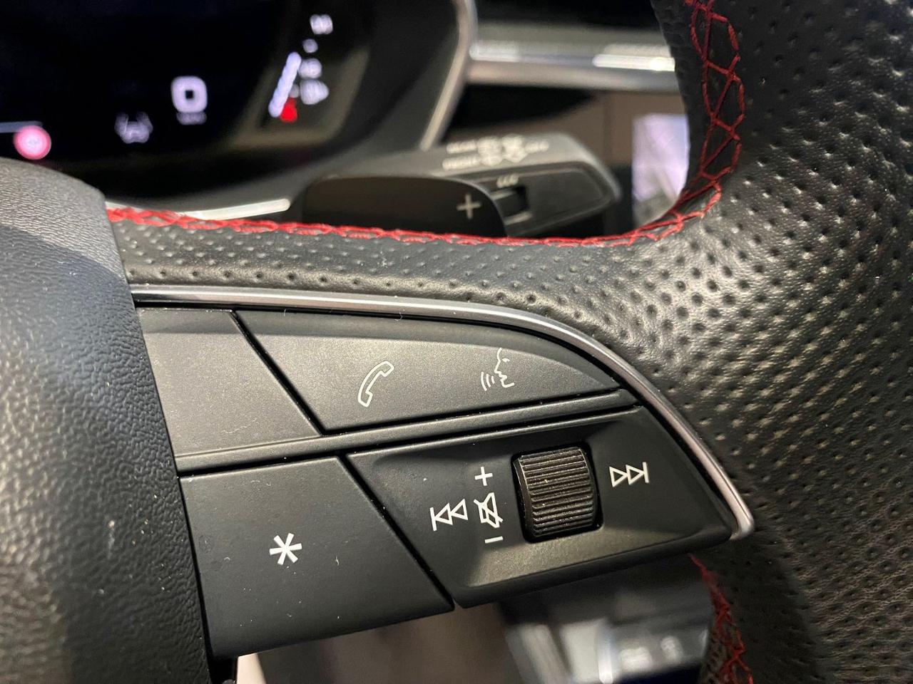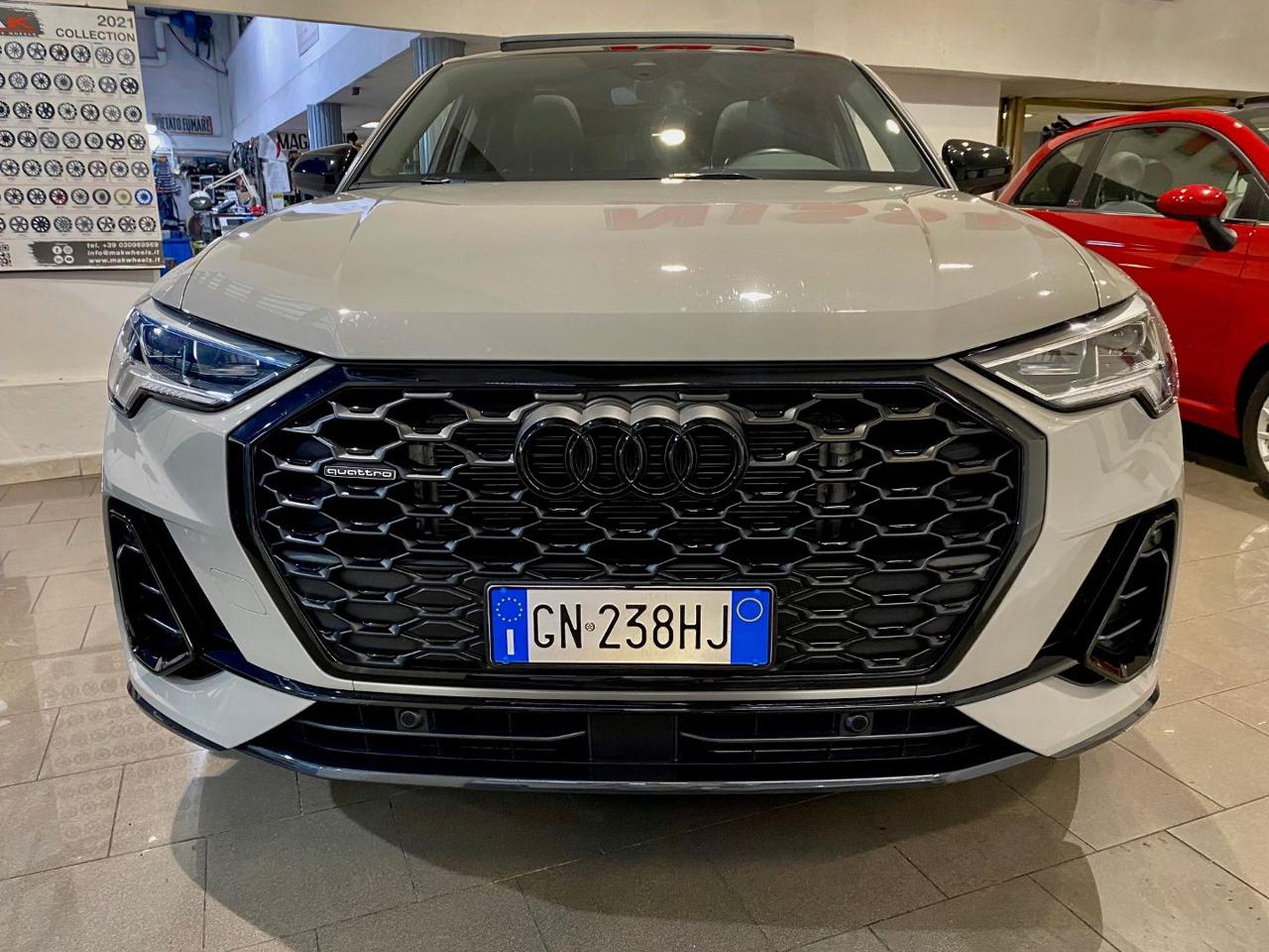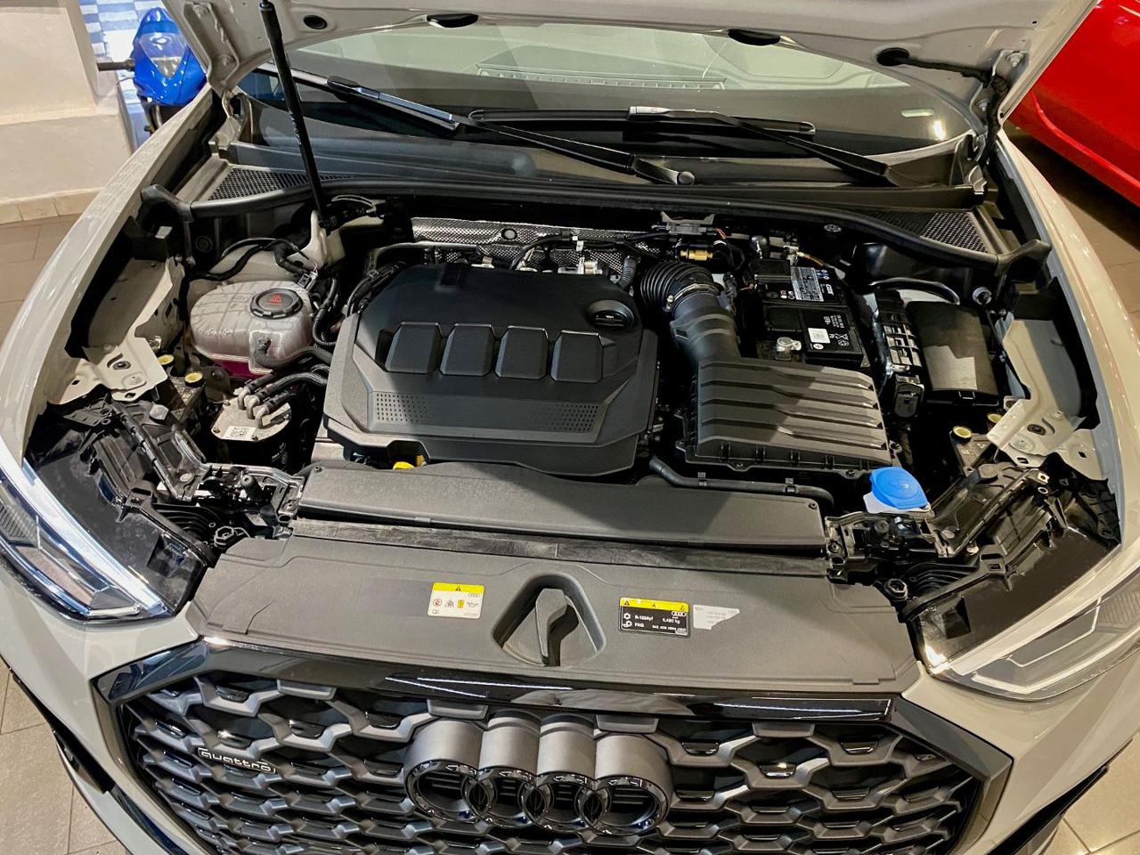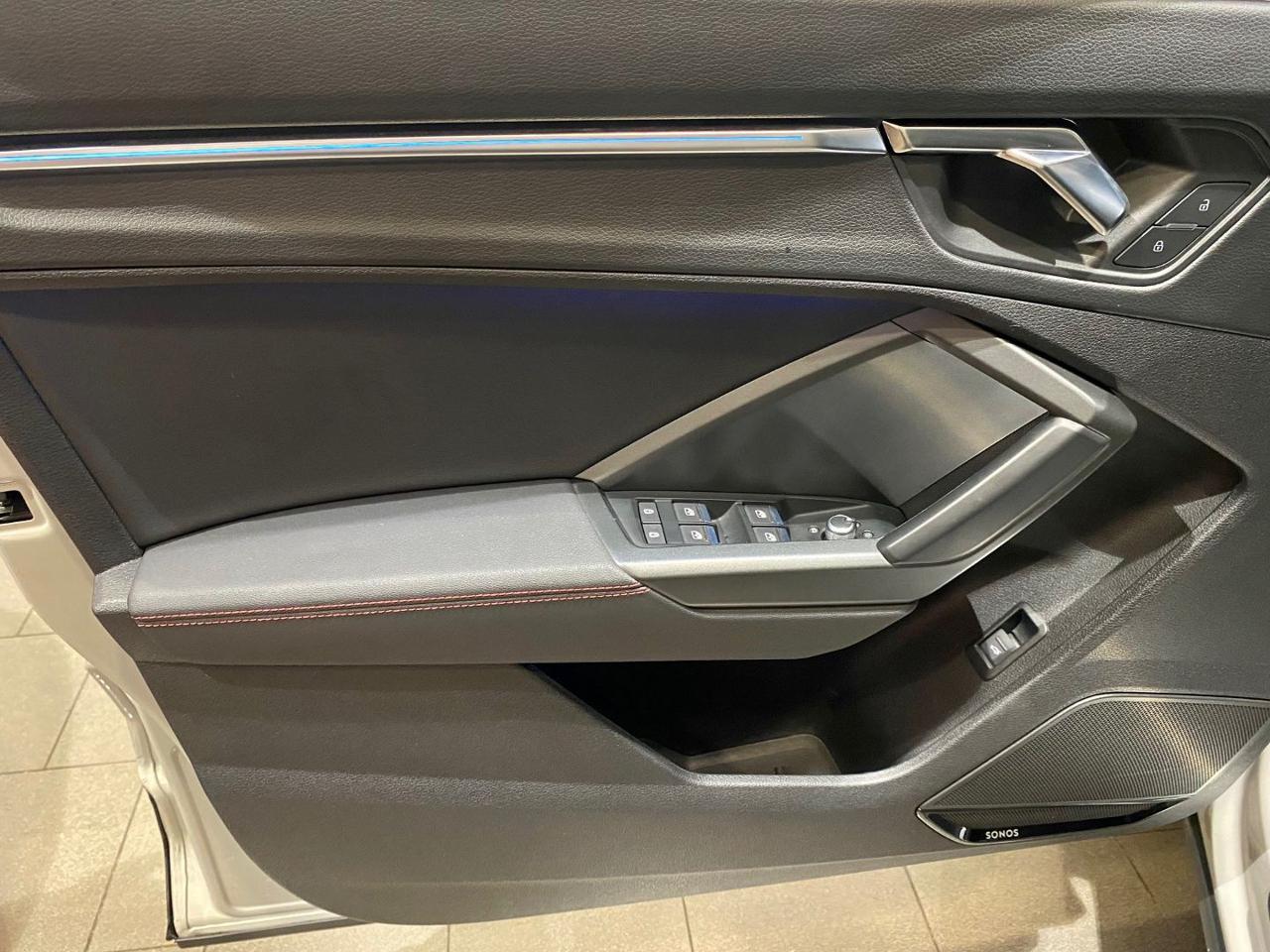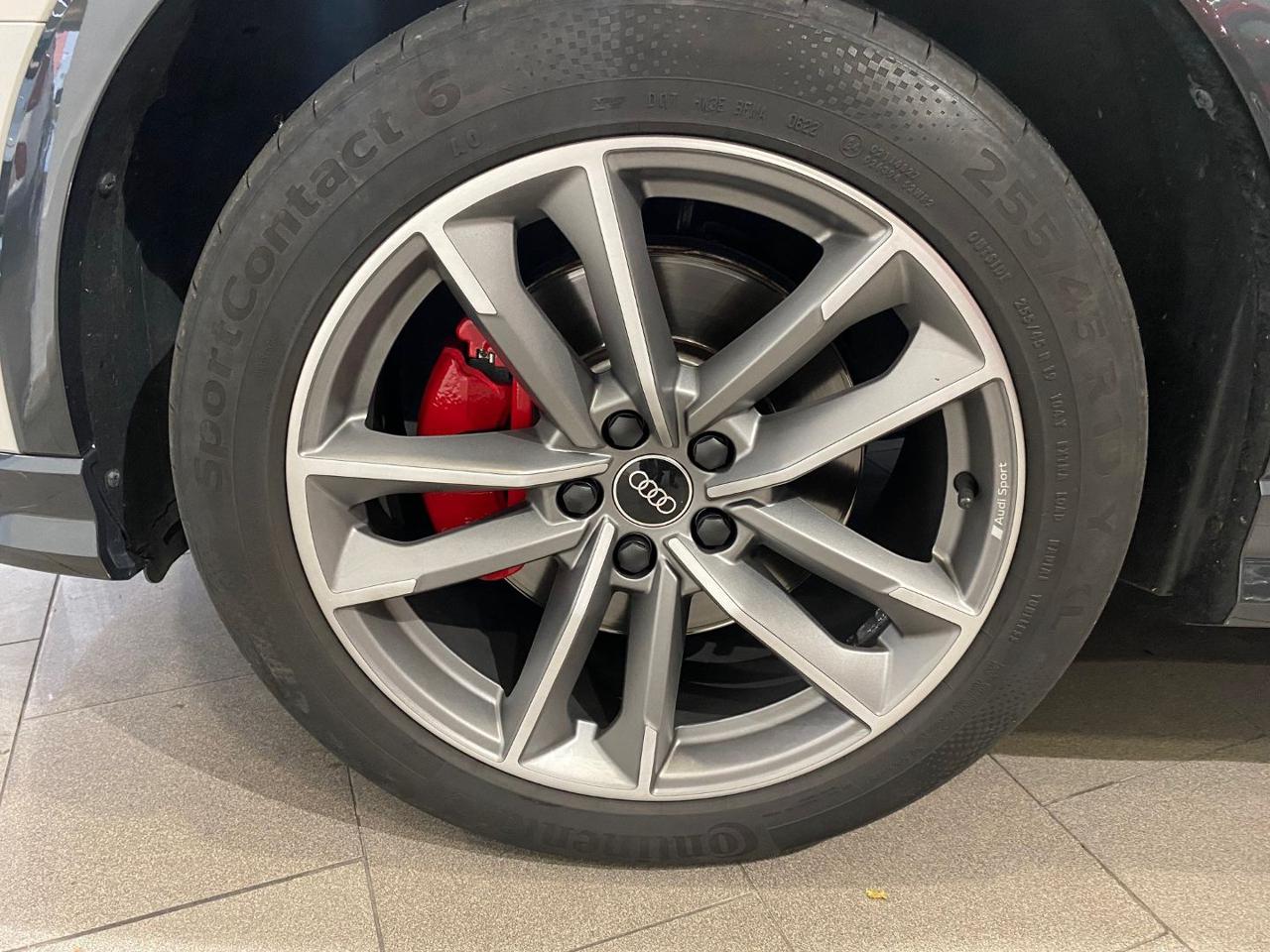 N7K interni pelle/Alcantara 44Q Cerchi 19 Matt Titanium PDE Assetto sportivo con regolazione ammortizzatori PXD Fari matrix LED g lights); 9S9 Audi virtual cockpit plus 9ZE Audi phone box con ricarica wireless WQS interior S Line 1M6 Gancio traino 2PK Volante sportivo 3FB Tetto panoramico Apribile 4A3 Sedili riscaldati 4E7 Portellone posteriore elettrico 4I3 Key Less 4L6 Specchietto interno anti abbagliamento 4ZD Pacchetto esterno nero lucido 7P1 Supporto lombare a 4 vie 7X5 Assistente al parcheggio 9VS Sonos premium sound system white 3D Sound EA8 Estensione garanzia 3 anni fino a 100.000km KA2 Telecamera postreriore KH5 Climatizzatore 3 zone PID Isofix su Sedile passeggero anteriore QL5 Vetri privacy QQ2 ambient light package plus multicolor UH2 hold assistant; YYB Pinze rosse 7W1 pre sense basic M9A Vernice matt 5KR Panca posteriore scorrevole 6JF Gusci specchi esterni nero lucido